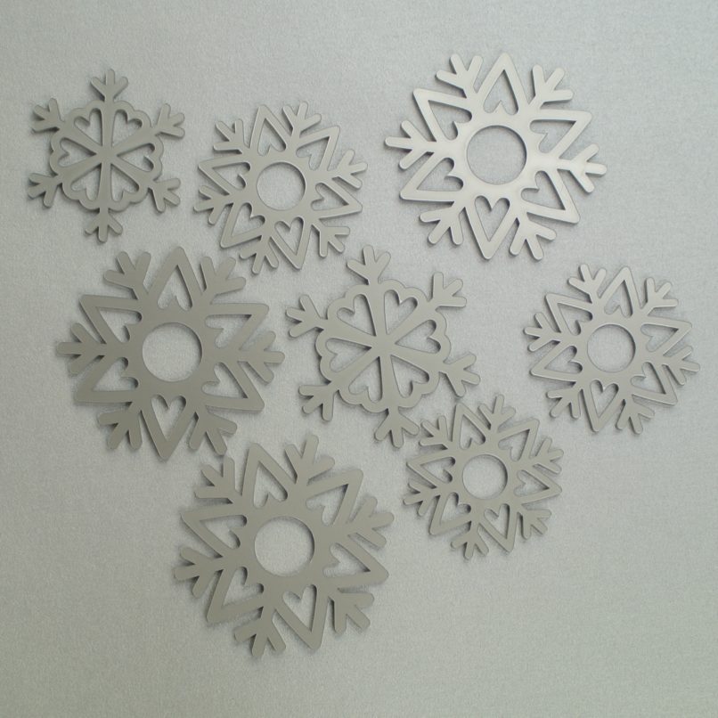 Laserované plexisklové vločky jako dekorace na sváteční tabuli.