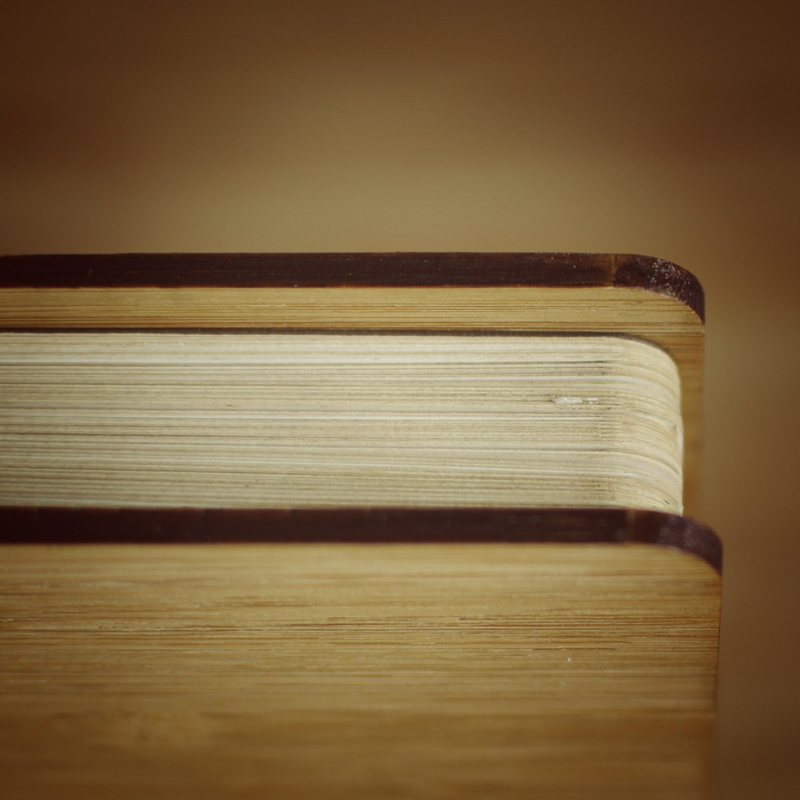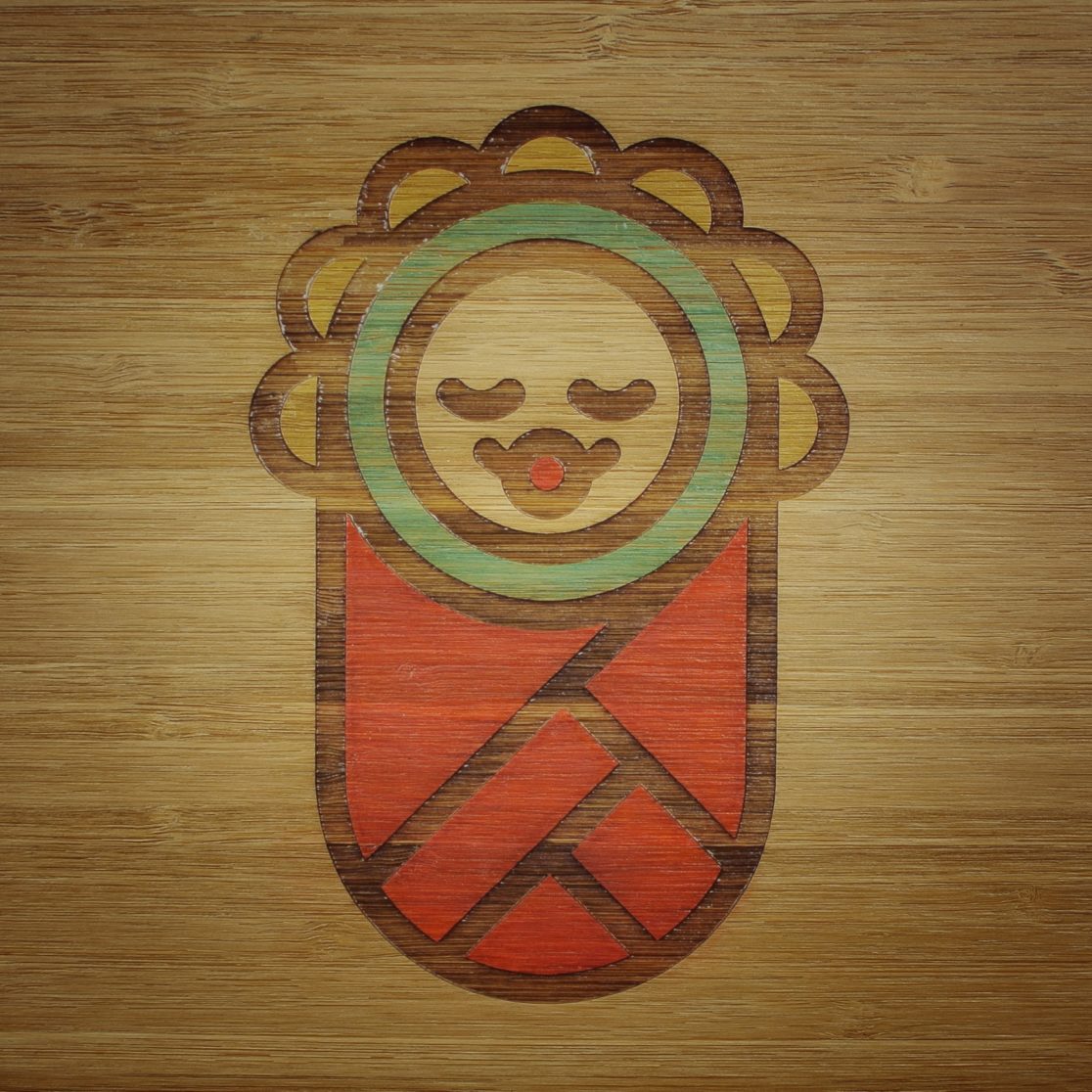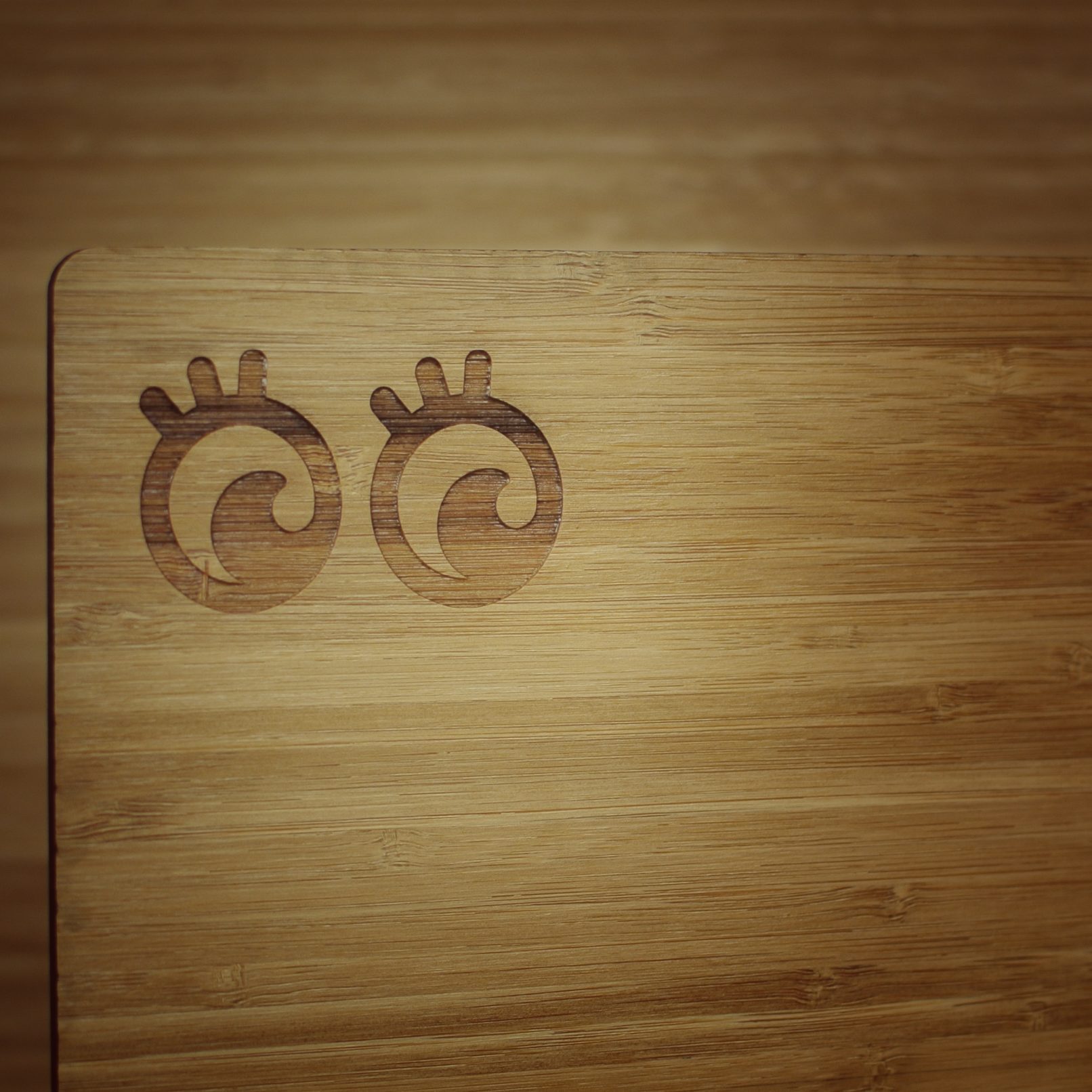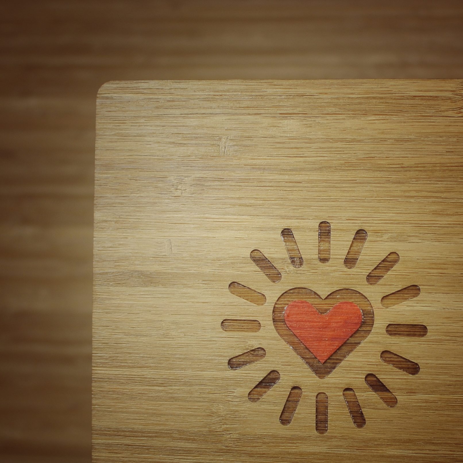 Laserovaná překližka z bambusového dřeva, gravírovaná grafika, kolorovaná, lakovaná. Vložené grafické papíry, vázané tkaničkou.