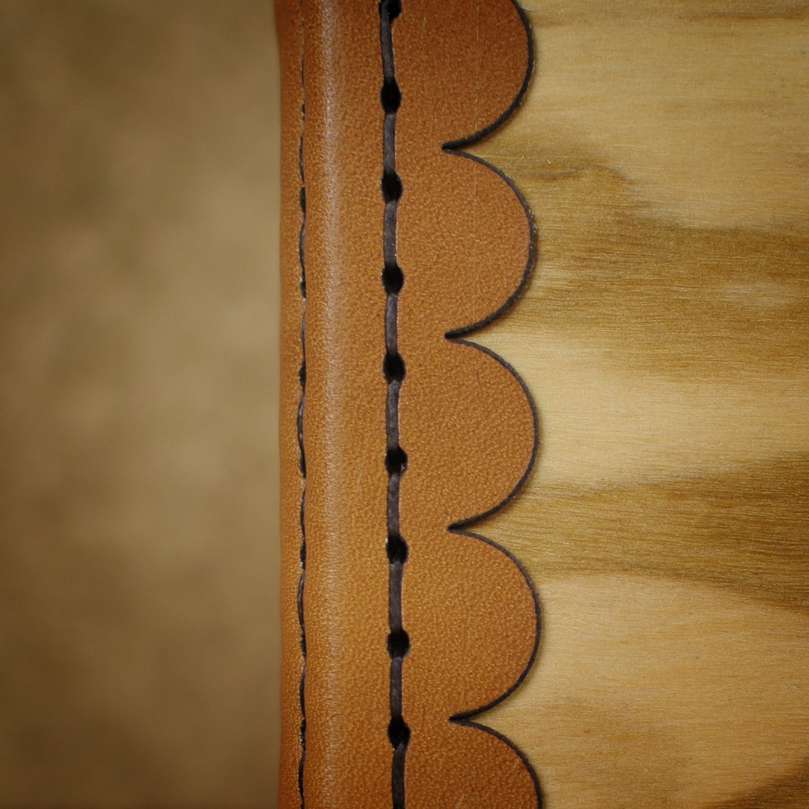 Hřbet laserovaný z hovězí kůže, laserované vnitřní listy z pauzáku a tvrdého papíru.