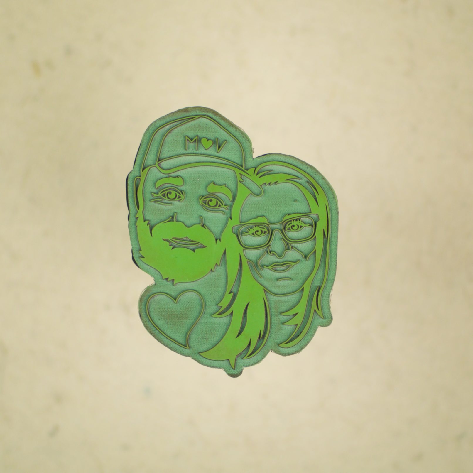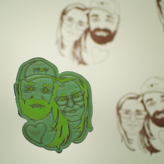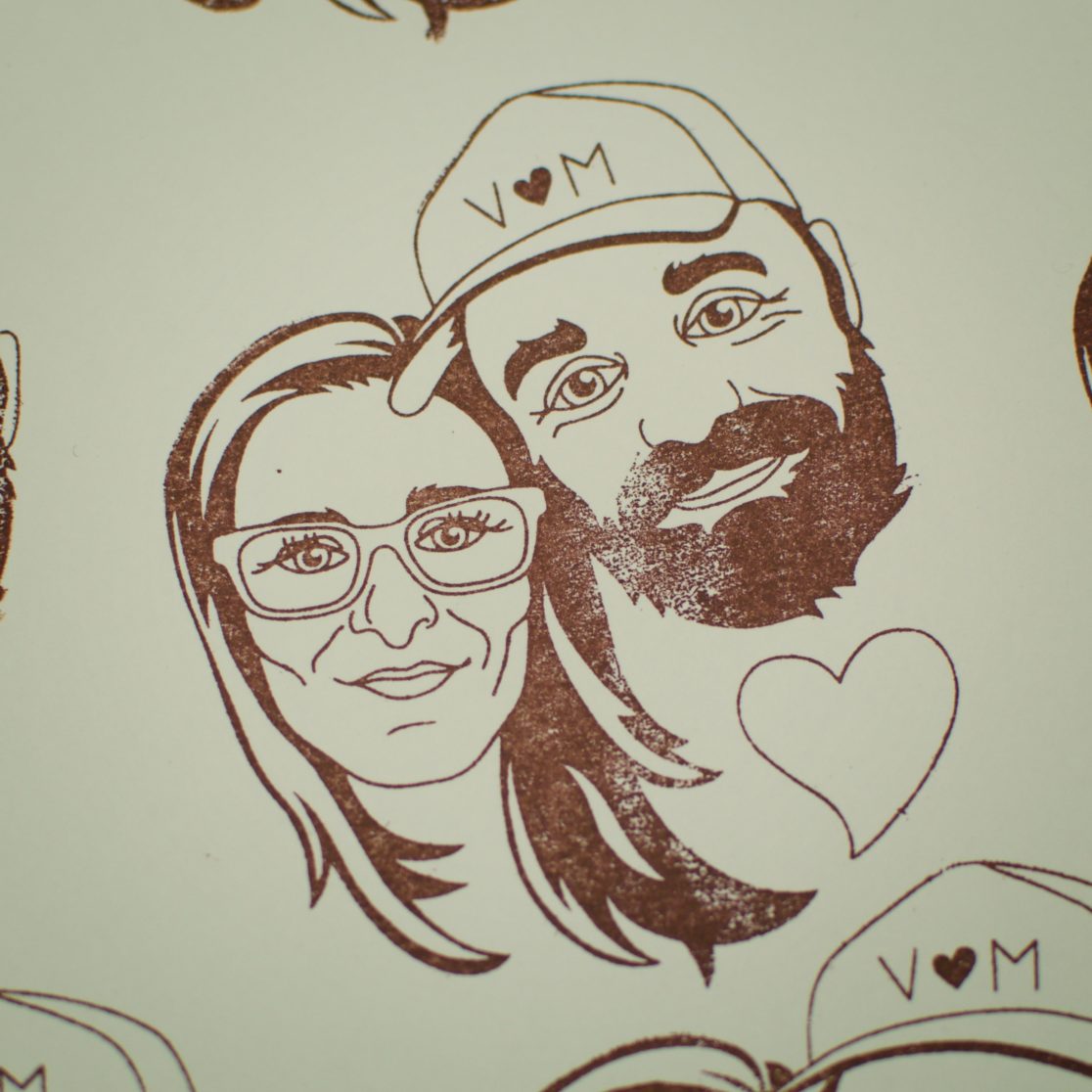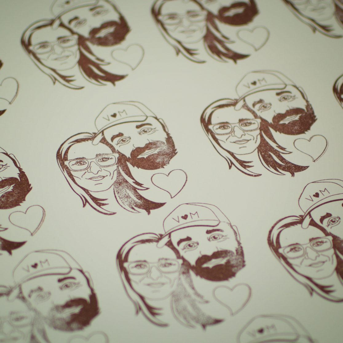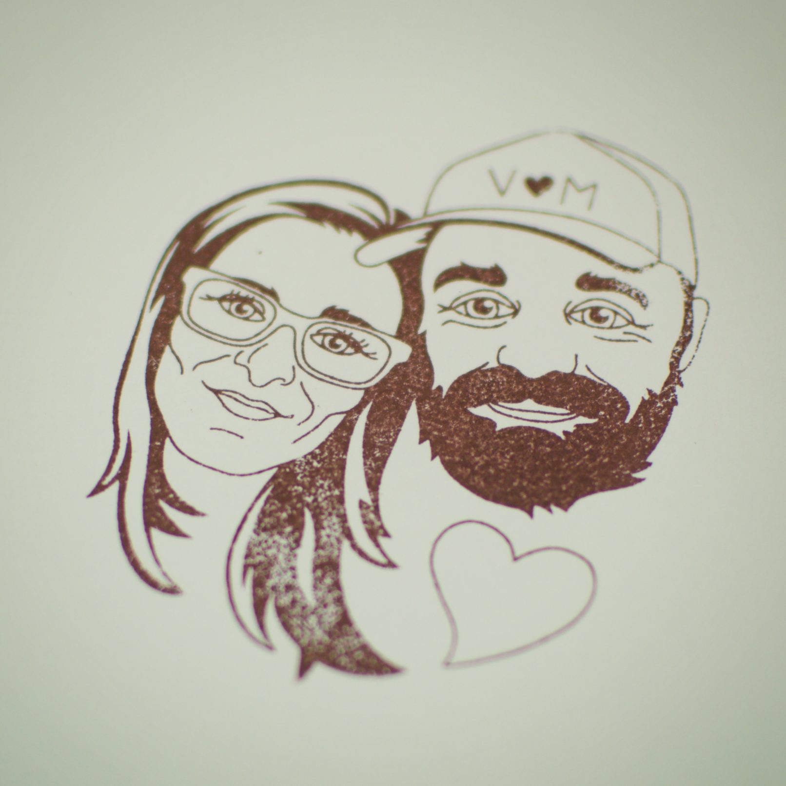 Svatební razítko - ilustrace, realizace. Laser, plexisklo, guma.