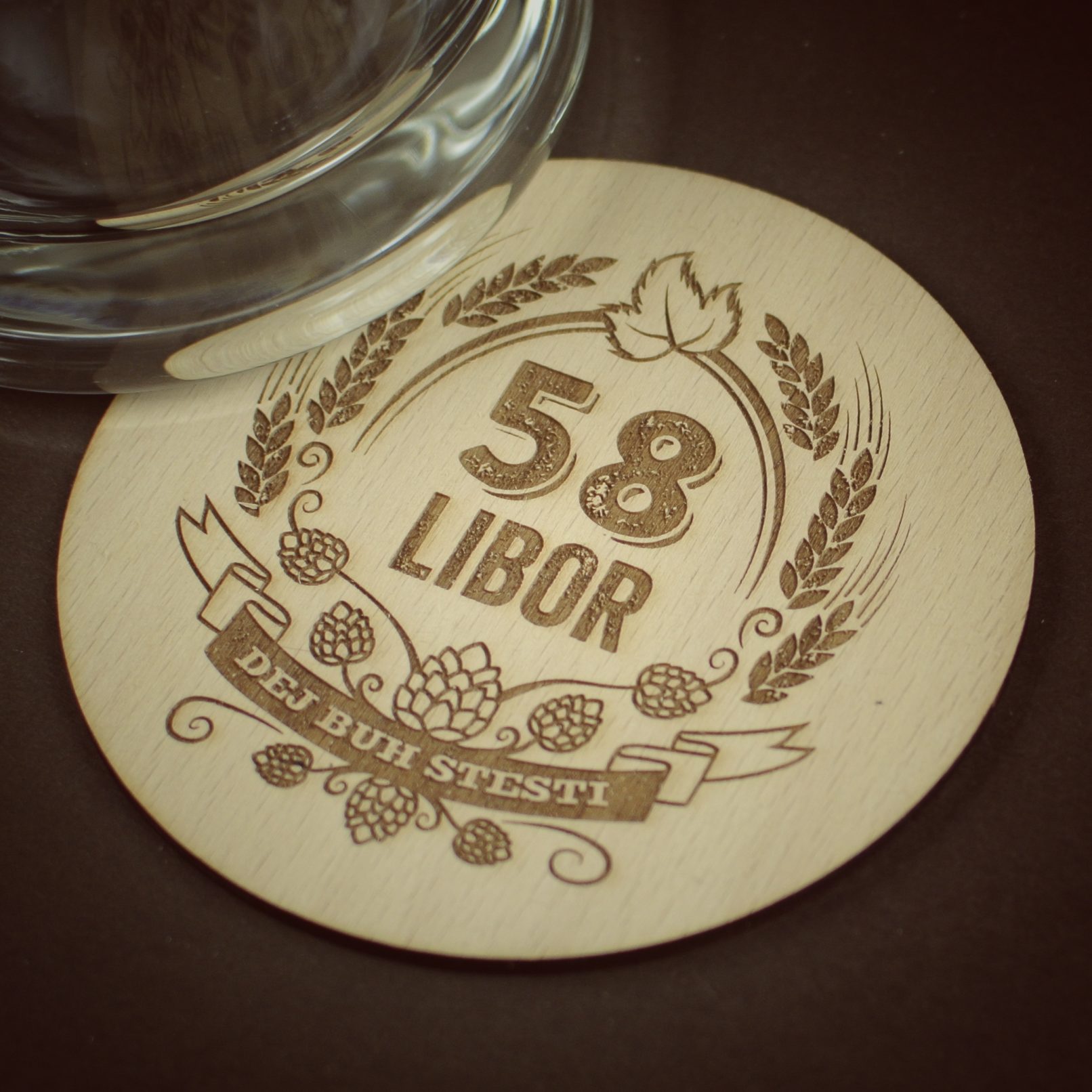 Grafické zpracování, gravírované sklo, laserovaná překližka.